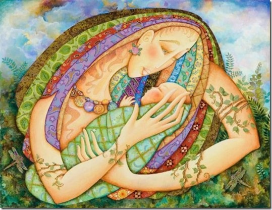 Recién entonces aparecieron las manos ásperas del hombre y sus dientes raídos. Mordió el hilito de piel para separarlas y tomarla entre sus brazos. Vida, mujer y tierra. Ellas estaban con los ojos abiertos. Las tres, regaditas de sal, de dulce rojo sangre. Savia y carne.