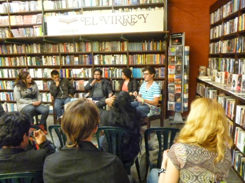 Ronda de lecturas en la Librería del Virrey. Katherine Estrada Aguirre, Carlos Mendoza, Virginia Janza, Jorge Alejandro Vargas Prado y Karina Macció.